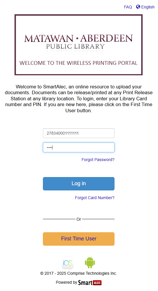 If you don't already have a library card, stop by the library to register - or you can complete our online form and we will provide you with a card number and PIN within about 24 hours.