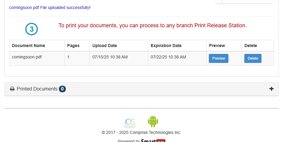 The final step is to go to the Print Release Station to release and print any document that appears in your Document list.